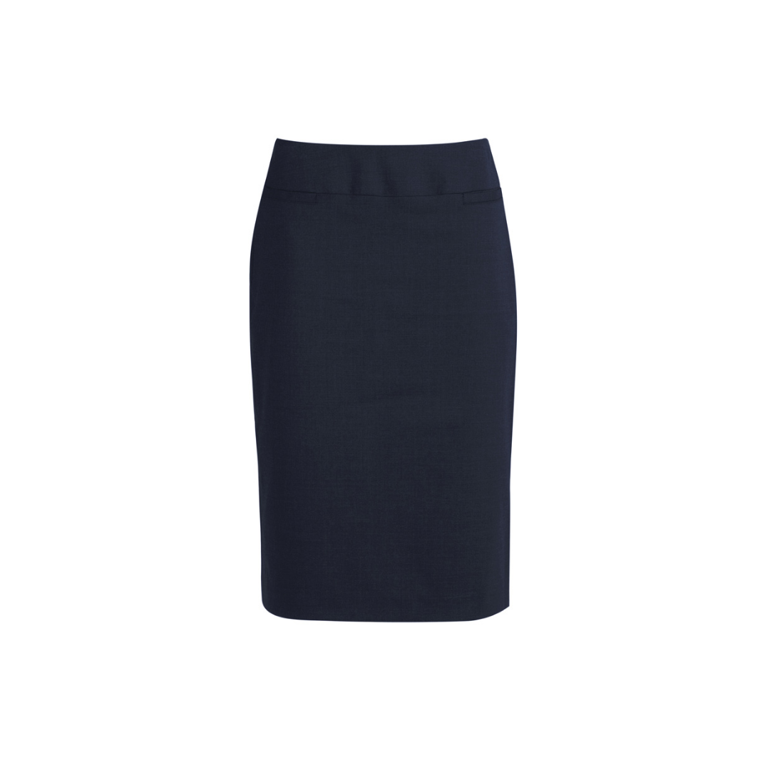 A straight, sophisticated corporate skirt that falls below the knee for a streamlined professional appearance. Exceptional fully lined quality, with concealed centre back zip, and reinforced back stride split.